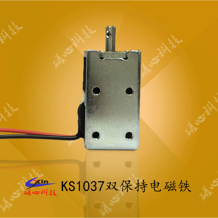 KS1040雙保持電磁鐵屬于微型推拉式電磁鐵,具有雙保持功能,產品可以在沒通電的情況下在永磁鐵的作用下保持在一個位置,保持力的大小可根據客戶的要求設定。電磁鐵廠家--磁心