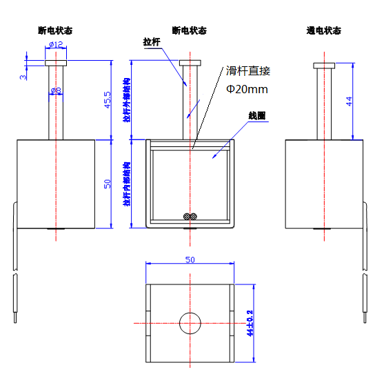 產品尺寸:50*50*44  (mm)具體尺寸如下圖: